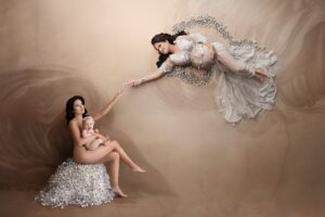 a big photo backdrop is leaning against a brown wall, two tiny backdrops adjacent, in the style of tonalist paintings, detailed, layered compositions, flat light, earthy tones, bronze and gray --stop 97 --ar 49:64 --style raw --stylize 50 --v 6 Job ID: cb7719d6-4d76-40c4-aced-9d03a09924a2